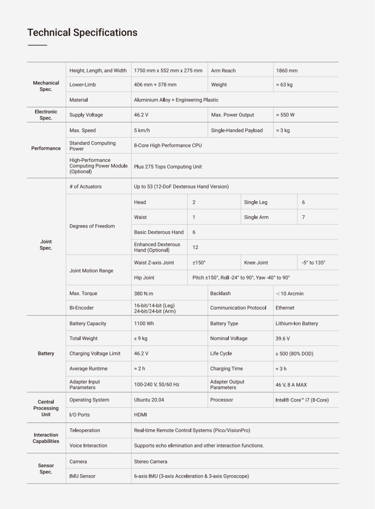 Below are the specs of the Fourier GR-2.